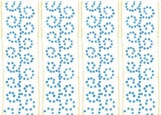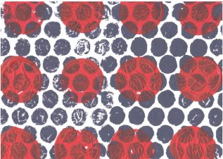 Es wurde mit verschieden großen Rundformen gestempelt. Zwei unterschiedliche Farben unterstreichen die Kontrastwirkung des Musters und heben die beiden unterschiedlichen Rundformen gekonnt hervor.
