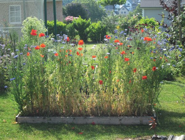 Man tritt hinaus ins warme Licht, wird umfangen vom Summen und Brummen kleiner Insekten. Die frische Luft einatmend, lässt man den Blick schweifen über grüne und farbige Beete, Gewürzpflanzen, kleine Sträucher und eine selbst hergerichtete Steinmauer.