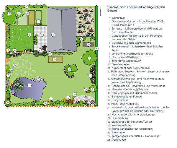 Die Checkliste orientiert sich an folgender Abbildung eines Idealgartens: