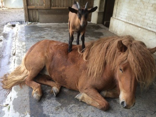 Nicht einmal das Pferd ist sicher vor den Kletterkünsten einer Ziege. – ©Thomas Pfulg