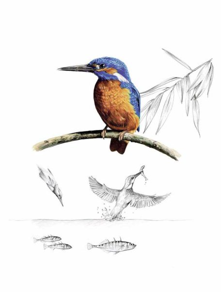 Ein fliegendes Juwel – so präsentiert sich der Eisvogel, wenn er auf der Jagd nach Fischen, Fröschen, Kaulquappen und auch aquatischen Insekten wie Wasserwanzen, Käfer- und Libellenlarven von einer Sitzwarte losfliegt, mit angelegten Flügeln im Sturzflug ins Wasser gleitet und mit oder auch ohne Beute im Schnabel wieder auftaucht. Der auffällige bunte, orange-blaue Vogel, der etwa so groß wie ein Star ist, besiedelt die Ufer sauberer, stehender oder langsam fließender Gewässer. Hier gräbt er in Böschungen oder in den Wurzelscheiben umgestürzter Bäume seine bis knapp einen Meter tiefen Nisthöhlen. Häufig hört man zuerst seinen Ruf, ein kurzes, scharfes «ziii», bevor man ihn knapp über der Wasseroberfläche dahinfliegen sieht.