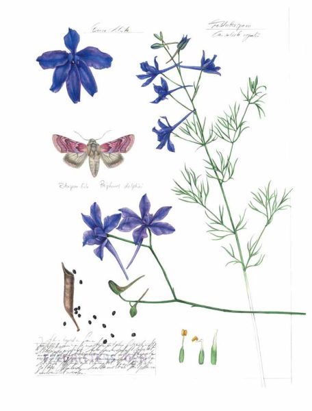 Es lohnt sich, die kleinen schwarzen Samen der Ackerunkräuter genauer zu betrachten. Unter einer starken Lupe werden wunderschöne Strukturen sichtbar. So haben Mohn-Samen feine Runzeln und die Samen des Feld-Rittersporns dicht stehende, kräftige und glänzende Schuppen, mit denen sie an der Erde oder vielleicht auch im Fell eines Tieres haften bleiben, nachdem sie aus ihren Früchten gefallen sind. Rittersporn-Samen keimen zu einem Teil im Herbst. Ab Oktober sind die Rosetten mit den fein zerschlitzten Blättern zu finden, die auch niedrige Temperaturen recht unbeschadet überstehen können. Ein anderer Teil der Samen keimt im Frühjahr. Eine gute Strategie, denn die zeitige Keimung im Herbst gibt den Jungpflanzen einen Wachstumsvorschub, sodass die Pflanzen nach dem Winter gleich in die Höhe wachsen können. Sollte der Winter doch zu streng gewesen sein und die Herbstkeimlinge vernichtet haben, sorgen die im Frühjahr auflaufenden Keimlinge für den Fortbestand der Population. Die Blütezeit des Acker-Rittersporns ist lang. Sie beginnt im Juni und kann bis zum Frost andauern. Die zarten Blüten werden vor allem von Hummeln aufgesucht, deren Rüssel lang genug ist, um an den im langen Sporn der Nektarblätter befindlichen Nektar gelangen zu können. Es sind meistens langrüsselige Hummeln, die bequem durch den weiten Eingang in die Blüte krabbeln können, allen voran die Garten-Hummel (Bombus hortorum).