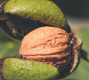 Ein mächtiger Baum. Um eine Befruchtung zu sichern, sollten am besten mehrere Walnüsse gepflanzt werden. An einem Baum befinden sich männliche und weibliche Blüten, die oft zu unterschiedlichen Zeiten blühen. Bekannt ist, dass der Walnussbaum gewisse Stoffe produziert, die das Wachstum anderer Pflanzen hemmen können, vor allem das von Apfelbäumen, Pinien, Tomaten und Kartoffeln, meint die Fachliteratur. Jedenfalls ist die Walnuss für einige Pflanzen nicht der optimale Nachbar, und das sollte man bei der Planung bedenken. Es gibt eine enorme Auswahl an Walnuss- Sorten. Neben dem üblichen Verzehr der Nüsse wird die Verwendung von jungen Nüssen immer beliebter. Diese werden im Juni mit Haut und Haar als «schwarze Nüsse» eingelegt oder dienen als Basisgewürz von «Vin de Noix», einer Weinmixtur. Die Walnuss-Gattung ist variantenreich und es gibt mehrere Arten, die für den Waldgarten geeignet sind.