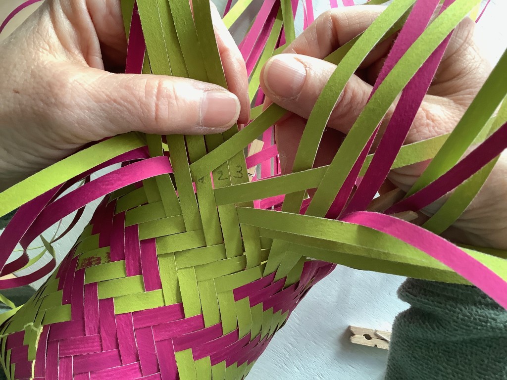 KORBFLECHTEN MIT PAPIERSTREIFEN