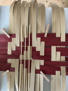 So arbeitete ich stehend, die langen Flechtelemente konnten nach alle vier Seiten abfallen.