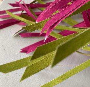 - Allein zu arbeiten, finde ich schwierig. Vierhändig geht gut, eine Person führt das Papierband durch die Walze und die andere Person nimmt unten die herauswachsenden Streifen in die Hände und zieht ganz leicht an diesem länger werdenden Bündel.