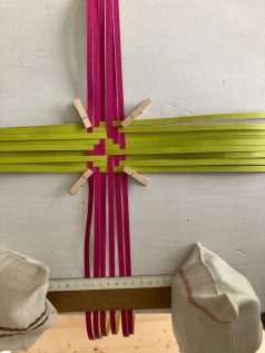 Zudem habe ich mit zwei Gewichtssteinen anfangs einen Teil der Flechtelemente temporär beschwert.