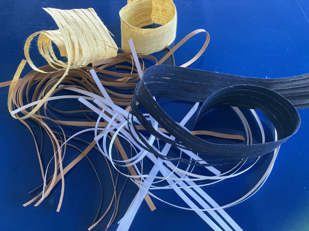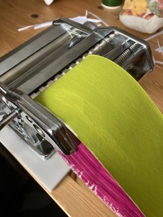Aus Neugier habe ich noch andere Materialien mit der Nudelmaschine in Streifen geschnitten.
