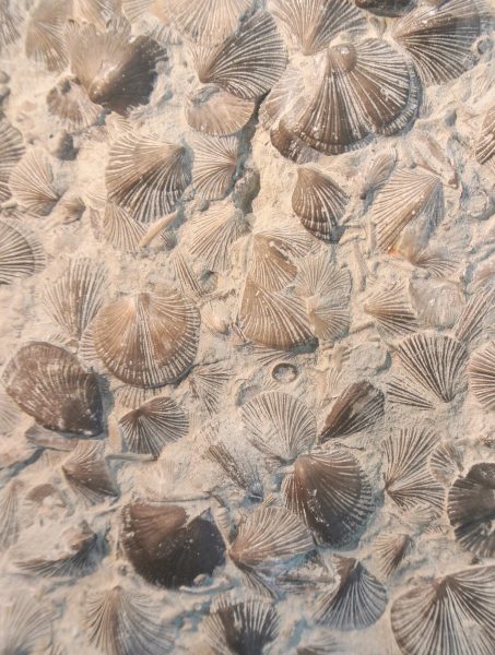 Trilobiten (links) und Brachiopoden bzw. Armfüßer (rechts) gehörten zu den Tieren, die mit der ambrischen Artenexplosion die Erde zu bevölkern begannen. Anhand ihrer fossilen Überreste – und, wie im Falle der Trilobiten, der Spuren ihrer Fortbewegung und ihres Grabens im Boden – lassen sich bestimmte Gesteinsschichten, die sich in dieser Zeit bildeten, sicher identifizieren.