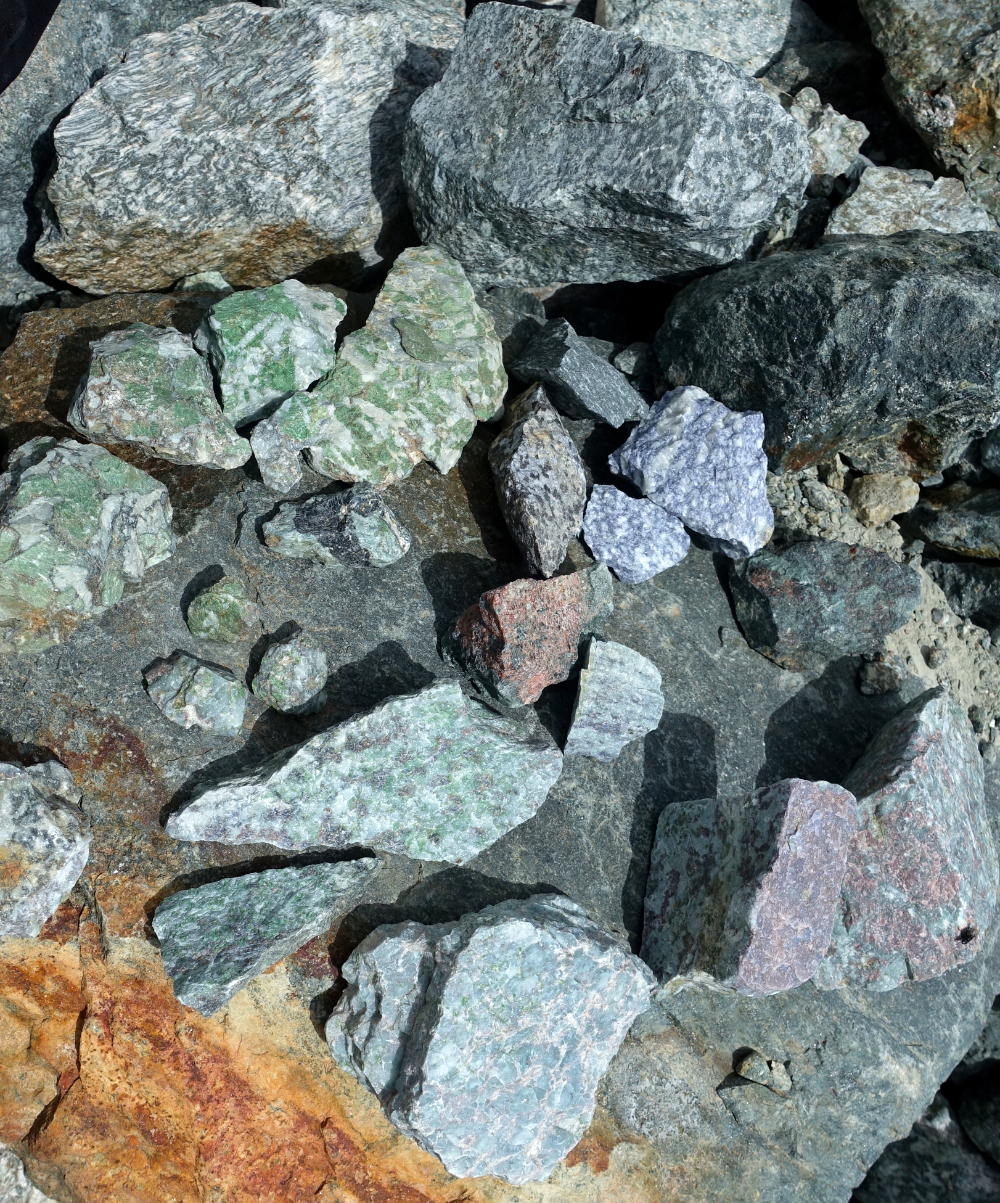 Drittens: Deshalb zeigt er sowohl von den Farben, den vorhandene Mineralien als auch von den Mustern und Strukturen her eine derart unglaubliche Vielfalt, wie dies bei kaum einem anderen Gestein vorkommt. Er ist also eine Art «Gesteins-Chamäleon».