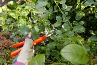 - Schneiden Sie mit der Rosenschere Stecklinge von der gewünschten Rose. Geschnitten wird direkt über einem Auge, also dort, wo die Blätter am Trieb sitzen. Augen sind Knubbel an einem Rosenzweig, an denen im Frühling die jungen Triebe erscheinen