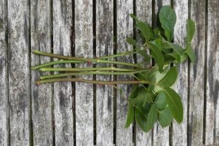 - Kürzen Sie den Steckling auf eine Länge von 10–15 Zentimetern, schneiden Sie dabei direkt unter einem Auge. Aus längeren Trieben mit vier oder fünf Augen können mehrere Stecklinge geschnitten werden.