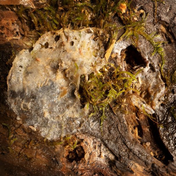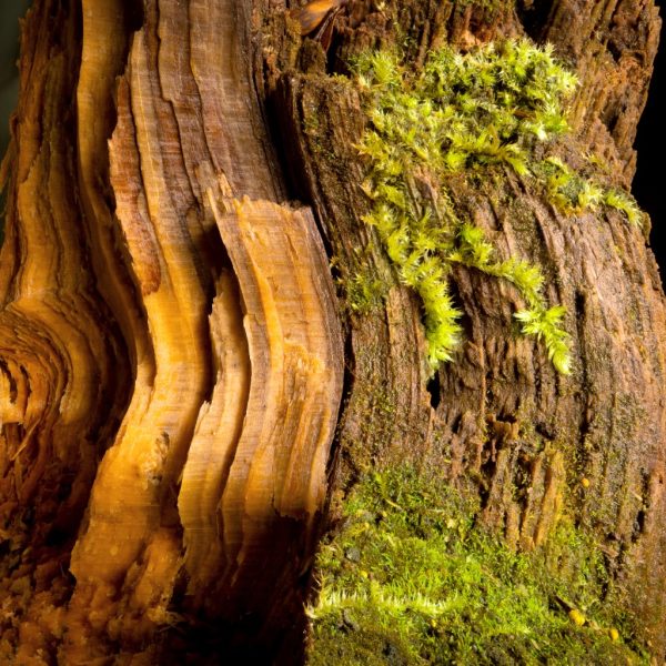 Die Zersetzung des Holzes schreitet voran. Dadurch gibt es hier alles, was neue Organismen brauchen, um es zu besiedeln: Nährstoffe, Wasser und Licht. Zurück bleibt Mulm – ideal für diese Moos-Kinderstube. Moose haben die Ära der Dinosaurier überstanden und bevölkerten die Erde bereits lange vor den Blütenpflanzen. Sie vermehren sich nicht über Samen, sondern wie Pilze über Sporen. In der Schweiz leben einige Dutzend Moosarten nur auf Alt- und Totholz. Sie selber dienen anderen holzbewohnenden Arten wiederum als Lebensraum und Nahrungsquelle.