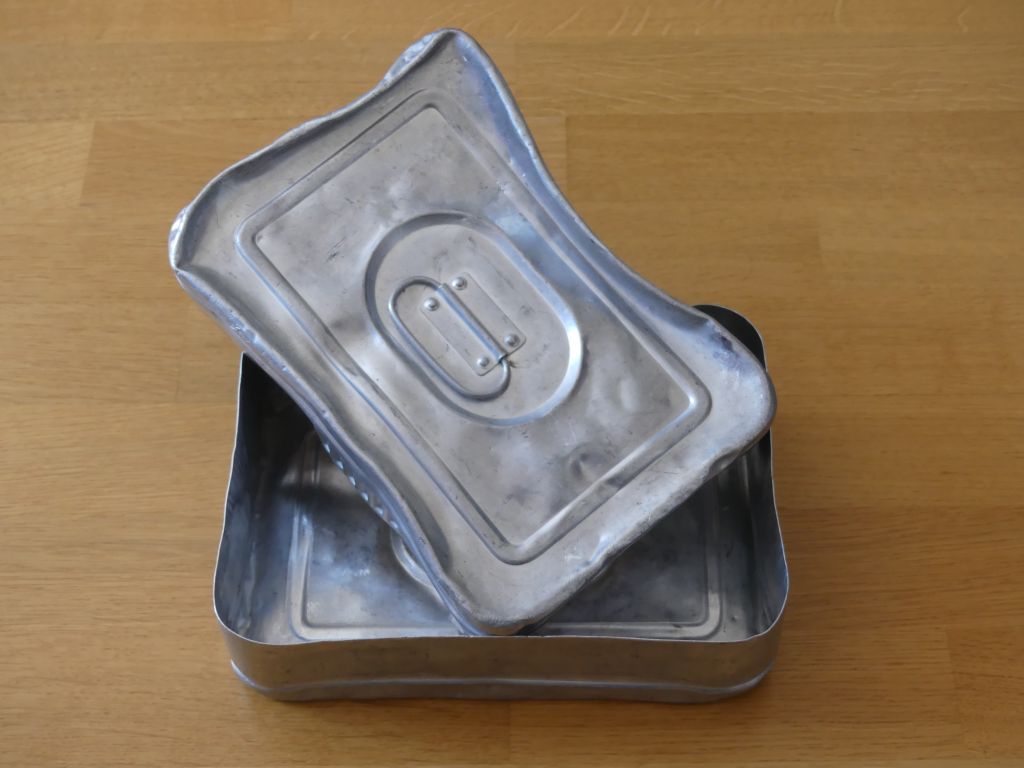 Mit dem Kunsthandwerk habe ich es wie gesagt nicht so. Entsprechend habe ich feststellen müssen, dass ich auf der Suche danach in meiner Wohnung auch nichts Passendes auftreiben konnte. Ein Gegenstand mit sehr viel «sentimental value» ist jedoch diese uralte verbeulte Aluminiumbox. Sie ist, so viel ich weiß, mit meinen Eltern in den 1970er-Jahren durch ganz Asien gereist und begleitete in meiner Kindheit alle unsere Familienwanderungen. Kurz bevor ich letzten Sommer mit meiner Freundin für ein halbes Jahr auf eine Veloreise durch Afrika aufbrach, haben meine Eltern mir diese Box geschenkt. Sie hat uns in Afrika gute Dienste geleistet! Nun darf sie aber in den wohlverdienten Ruhestand treten und eine zweite Existenz als Dekogegenstand führen.