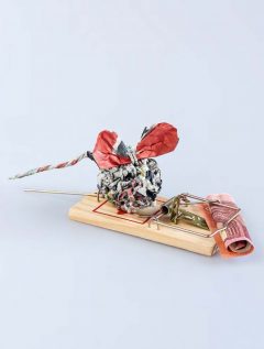 Wenn ich mich für ein Lieblingsprojekt entscheiden muss, wähle ich wegen seiner Dimension, des großen Arbeitsaufwands und der Symbolkraft das Wandbild „Lebenskreis“ aus Seil und Schnur mit einem Durchmesser von einem Meter. Immer wieder gerne fertige ich aber auch gehäkelte Tiere von der Maus bis zum Elefanten und die besonders bei Journalisten beliebten Zeitungsenten an.