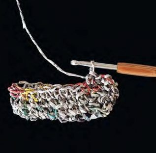 Zwar lässt sich Zeitungsgarn mit sämtlichen Techniken verarbeiten, die man von anderen Garnen kennt, ich entscheide mich aber meist für das Häkeln. Zum einen liebe ich die rustikale Optik, zum anderen werden die Produkte durch das Häkeln besonders stabil und widerstandsfähig.