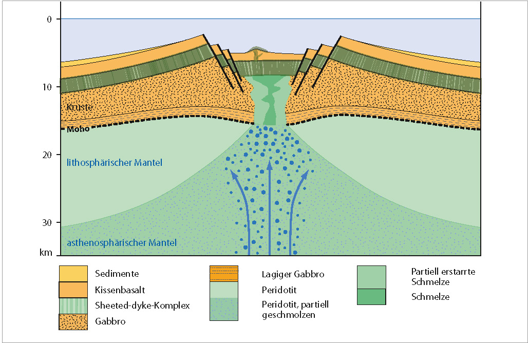 Abbildung 4-1 Schematischer Schnitt durch einen Vulkan eines mittelozeanischen Rückens