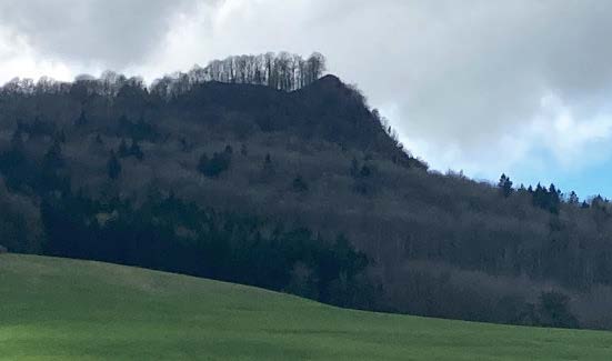 Die Vulkane des Hegaus, im Norden des Bodensees zwischen den Orten Singen, Hohentwiel und Engen. Die Vulkankegel erheben sich ca. 300 m über die fluvioglazialen Terrassen und besitzen eine sehr typische kegelartige Form (Abb. 4-4, 4-5). Der Vulkanismus begann vor 15 Millionen Jahren, mit einem Aktivitätsmaximum zwischen 13 und 9 Millionen Jahren. Die Vulkane bestehen im Wesentlichen aus Tuff- und Basaltgesteinen. Der Vulkanismus im Hegau entwickelte sich an der Kreuzung zweier tiefer tektonischer Verwerfungszonen: der «Freiburg-Bonndorf-Bodensee-Störungszone» und der «Albstadtverwerfung». Der Vulkanismus hinterliess Asche und Tuff in den Sedimenten der Oberen Süsswassermolasse des Schweizer Mittellandes (https://lgrbwissen.lgrb-bw.de/ geotourismus/landschaftsteile-felsen/ alpenvorland/hegau-vulkane).