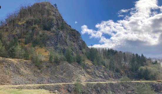 - b ehemaliger Steinbruch in den Säulenbasalten (Nephelinit) auf der Nordseite des Vulkangipfels