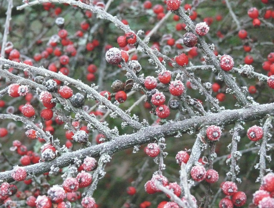 Den Garten nicht zu kleinteilig gestalten und auch nicht alles abschneiden, wenigstens nicht sofort mit dem Kälteeinbruch oder schon lange vorher, wie es häufig praktiziert wird. Gerade im Frühwinter machen sich dürre Staudenstängel und Früchte tragende Zweige gut. Und sie bieten Futter für Vögel!