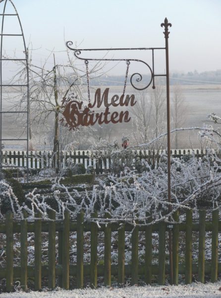 Was den Garten angeht dauert der Winter ja viel länger als die kalendermäßigen drei Monate. Je nach Klimalage präsentiert sich der Garten nach dem herbstlichen Blattfall vier oder fünf Monate lang winterlich. Während dieser langen Zeit ist der Garten auch ständig präsent und wird betrachtet. – Da ist es doch eine schöne Aufgabe, ihn auch im Hinblick auf diese lange Zeit von Oktober bis März schön zu gestalten und dann eben weniger an Blütenreichtum, stattdessen mehr an immergrüne Blattschönheiten zu denken und diese gestalterisch in die Gesamtkomposition einzubinden. So ist es doch eine Freude für alle Betrachter, auch für die Passanten.