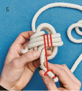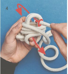 BILD 3: Wickle das Seil gegen den Uhrzeigersinn waagerecht, sodass auf beiden Seiten drei Buchten entstehen.