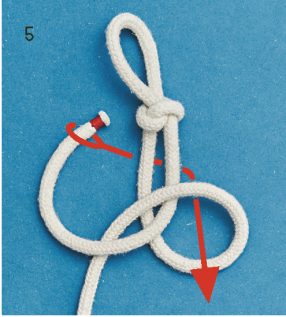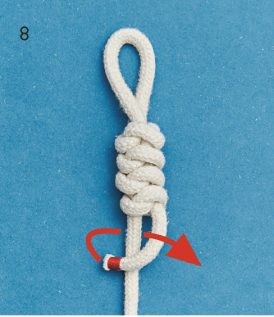 BILD 7 und 8: Mit einem halben Schlag enden. Das überschüssige Seil eventuell abschneiden.