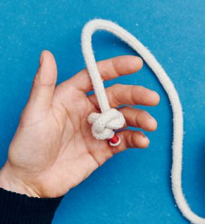 Ein nettes Spielzeug für alle süßen und spielwütigen Katzen. Der Handgriff entsteht mit einem zweisträngigen Wandknoten – einem vielfältig verwendbaren Knoten, den man beispielsweise auch für Schlüsselringe, als Zipperersatz an einem Reißverschluss, für ein Armband oder vielleicht auch als Riemen für die Kamera oder ein Fernglas nutzen kann.