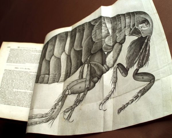 Illustration eines Flohs unter dem Mikroskop aus dem Werk «Micrographia» von Robert Hooke. ©Wellcome Library Collection, L0043504, http://catalogue.wellcomelibrary.org/record=b1088334