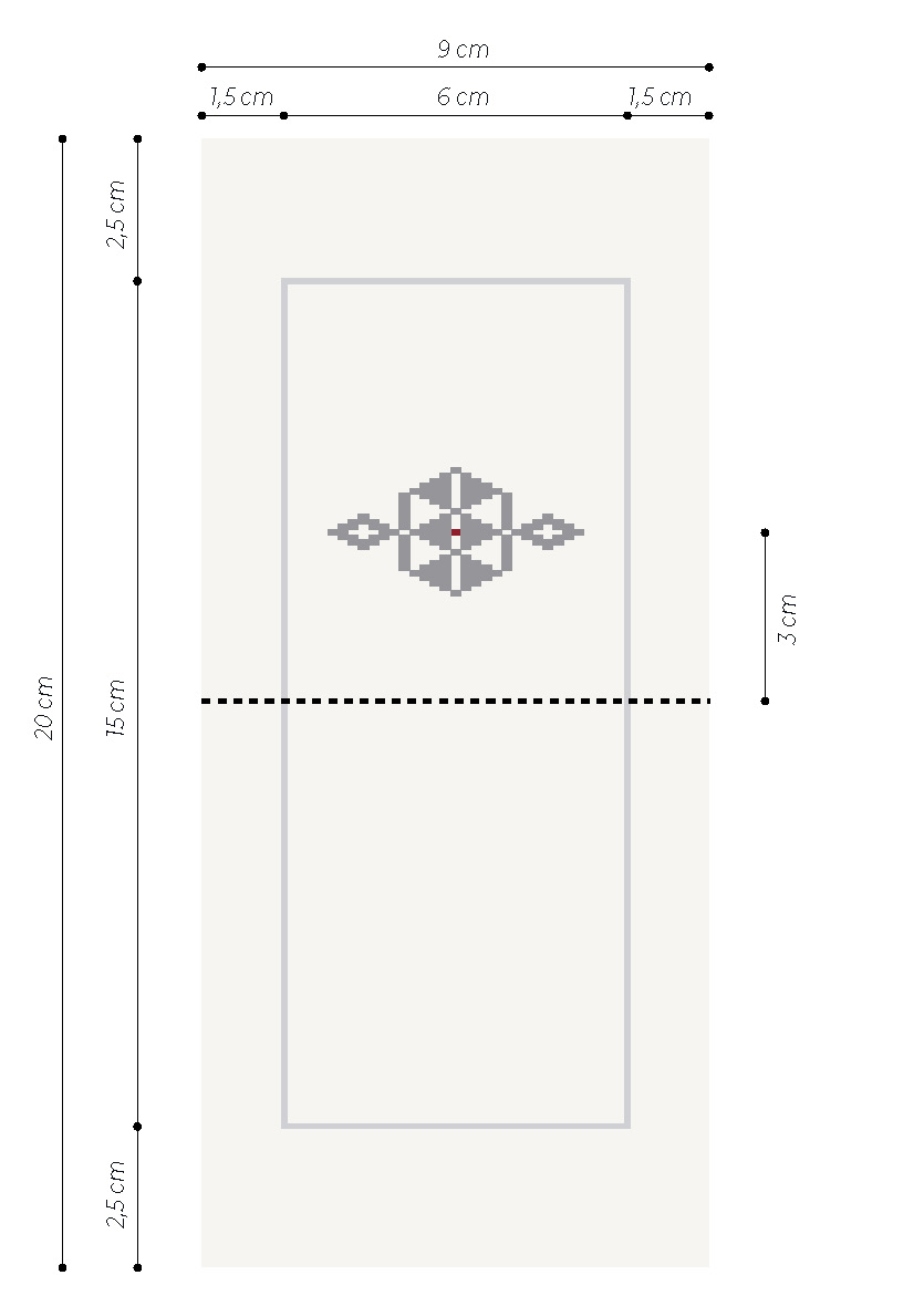 • Das Motiv so platzieren, dass es mittig und 3 cm oberhalb der Falzkante sitzt.