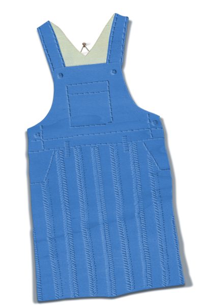 Unten abgebildet ist das Meißelmotiv, mit welchem die Motive auf dem Latzrock geprägt wurden. Der Latzrock wurde aus unbehandeltem Pappelsperrholz hergestellt und später digital eingefärbt.