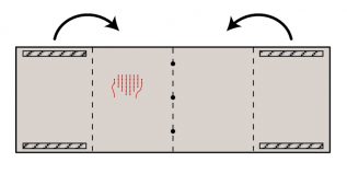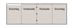 3. Einen Umschlag aus Karton zuschneiden. Soll die Vorderseite bestickt oder dekoriert werden, empfiehlt es sich, Einschläge einzukalkulieren. Der Einschlag wird nach innen eingeschlagen und verbirgt so die Rückseite der Stickerei. Der Umschlag muss dieselbe Höhe wie der Innenteil haben; Vorder- und Rückseite müssen 2 mm breiter sein. Der Innenteil muss etwas schmaler sein als der Umschlag, damit es am Rücken nicht zu eng wird. Falzen Sie Rücken und Einschläge.