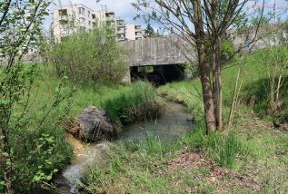 Der Sagentobelbach ist im regionalen Richtplan als Korridor zur Vernetzung der Glatt mit dem Adlisberg ausgewiesen. Die neue Unterquerung der Kantonsstraße wurde deshalb so gestaltet, dass sie als Passage für aquatische und terrestrische Kleintiere dienen kann (siehe Abbildung). Für einen funktionierenden blau-grünen Durchlass sollten folgende Kriterien erfüllt sein: (1) Der Durchlass schließt an den natürlichen Verlauf des Gewässers an. (2) Er ist möglichst kurz, breit, hoch und hell; der Ausgang ist sichtbar. (3) Die Gewässersohle ist im Durchlass naturnah gestaltet und