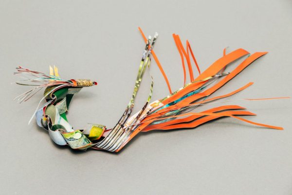 Fabeltierchen in Häkeltechnik, 2 cm Streifenbreite, Freestyle-Abschlüsse, Plakatpapier, mit Zeitschriftenpapier beklebt