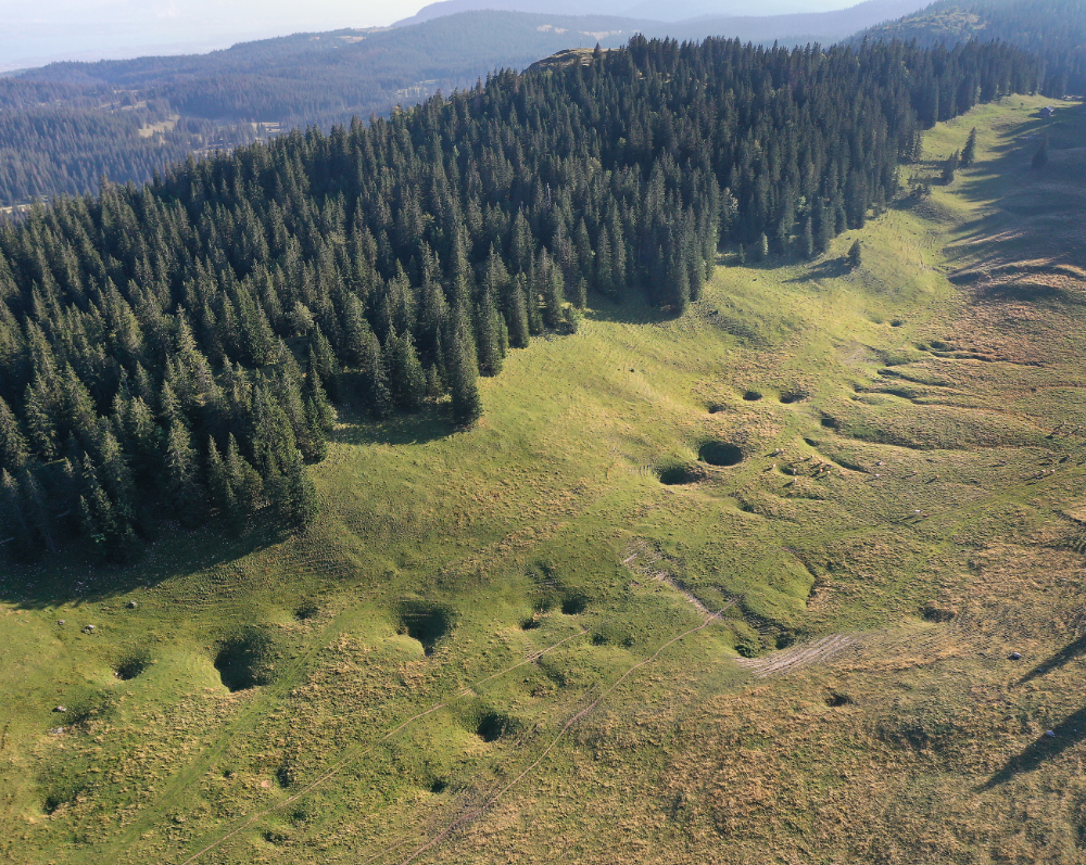 In den Erosionstälern des Jura findet man häufig Dolinen, die das Regenwasser auffangen