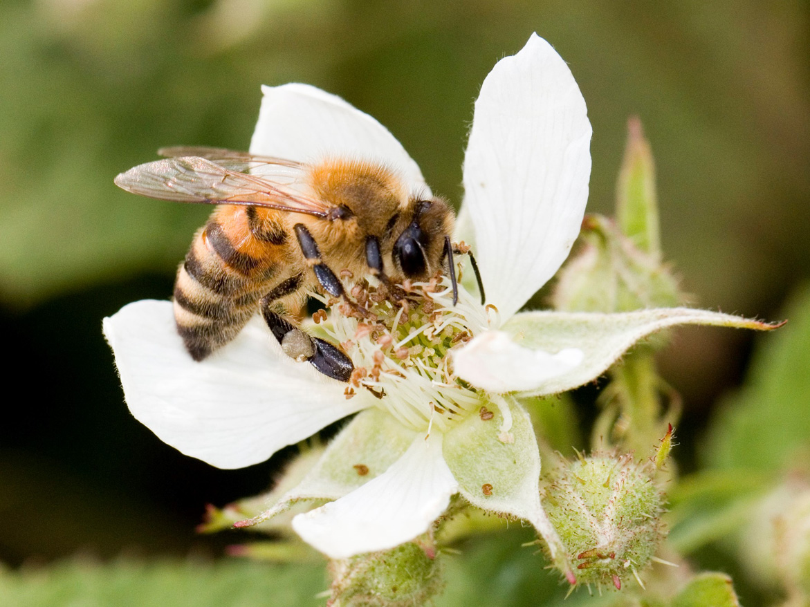 Die Honigbiene sammelt auf der Blüte nicht nur Nektar und Pollen, sondern auch für ihr Überleben notwendige Mikroorganismen, die ihr eigenes Mikrobiom bereichern.
