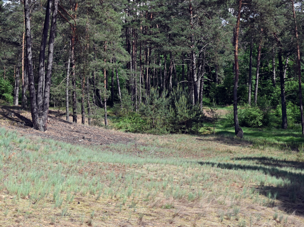Flugsand-Binnendünen mit Silbergras (Corynephorus canescens) in lockerem Kiefernwald, Siegenburg, Niederbayern. 29.05.2022. Foto: Marcel Ruff.